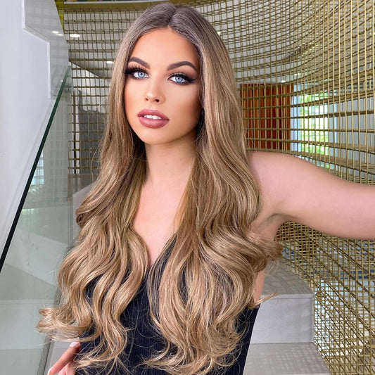 TOUCH WOOD Long Ombre Blonde Wigs for Women 26 inch Long Wavy Middle Part Wig Ombre Blonde Wigs Upgraded Protein Fiber Hair Replacement Wig Cosplay Costume Halloween Wig(26'' Brown Ombre Blonde)