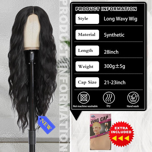TOUCH WOOD Cosplay Long Black Wig 28 Inch Middle Part Synthetic Wig Realistic Gifts Party Wigs for Women Daily Use Colorful Wigs (Black)