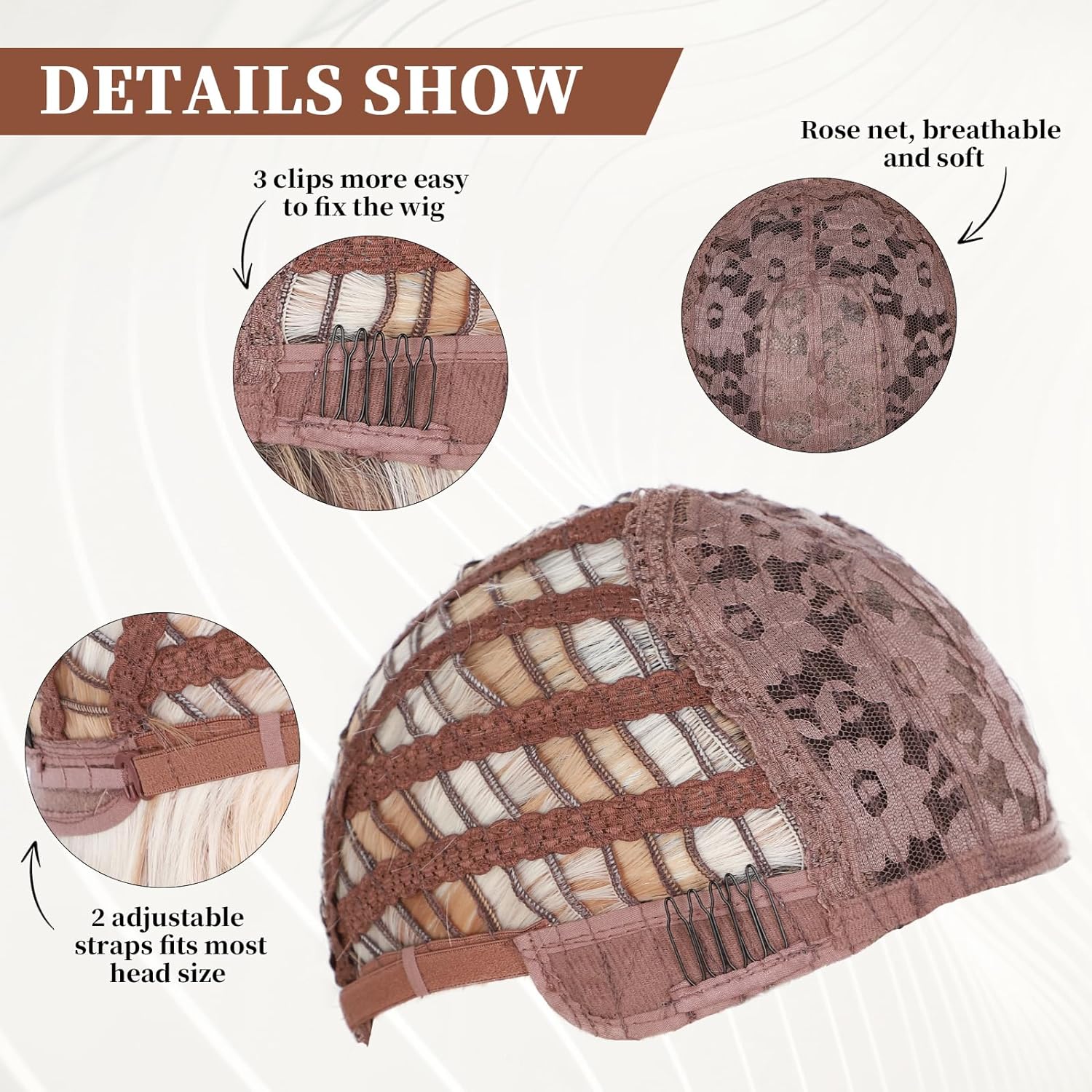 - Comfortable& Breathable Net:The new elastic mesh is breathable and comfortable, not stuffy, and can be used in any season. The 2 adjustable straps make the wig can fit 21.5-22.5 inches head size/shape. The other three clips can hold the wig firmly without falling off easily